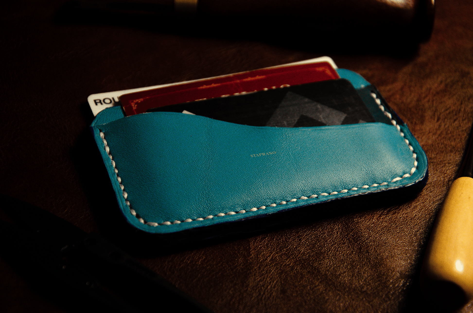 Portcardul Ondée este eleganță în mișcare. Inspirată de valurile mării, această piesă combină armonia formelor cu funcționalitatea. Creat manual în atelierul Staphano din piele naturală, portcardul se remarcă prin buzunarele sale în valuri, special gândite pentru carduri și documente. Nuanțele sale de albastru, de la tonuri clasice până la cele moderne, se potrivesc oricărui stil. Un accesoriu care aduce rafinament și originalitate în fiecare detaliu.
